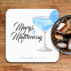 Margs & Matrimony Blue Bridal Shower Square Paper Coaster