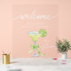 Welcome guests to your "Margs and Matrimony" bridal shower with this chic clear acrylic sign. It features a delightful watercolor margarita glass with a lime green bow tied on the stem and "Welcome" in handwritten script with long swashes. This versatile sign is ideal for an easel at the entrance, a welcome table centerpiece, or even propped on a bar cart to greet guests as they arrive. Personalize it with your event title and date to make a lasting impression. © Kimbellished, LLC