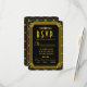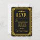 Ces cartes de réponse RSVP présentent une palette de couleurs noir et or, un cadre géométrique, des motifs géométriques et d'autres détails stylistiques inspirés de l'Art Déco et des années folles. Vous pouvez customiser les champs de texte d'exemple à votre convenance.