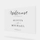 Scénario de typographie simple noir et blanc chic moderne mariage horizontal transparent acrylique de bienvenue. ++++++++++++++ Veuillez noter que les couleurs de l'arrière - plan et du texte peuvent être modifiées. ++++++++++++++++ Idéal pour des célébrations mariages élégantes et élégantes ou des anniversaires.