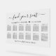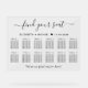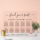 Chic mariage tableau de sièges clair acrylique pour jusqu'à 12 tables avec "trouver votre siège" dans un script élégant avec des swashes, vos noms et date de mariage unis ensemble avec un coeur et "Nous sommes si heureux que vous êtes ici" en lettrage simple et moderne.