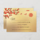 Le cerisier rouge fleurit sur un arrière - plan doré et un double symbole de bonheur rouge. Carte Mariage chinoise RSVP.