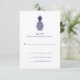 Ces cartes RSVP de mariage élégantes comportent un ananas bleu marine sur un arrière - plan blanc.