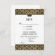 Élégant motif géométrique de style art déco or et noir faux. Incluez une carte-réponse avec votre invitation de mariage. Cette carte est conçue pour inclure également les choix de préférence de repas pour vos invités. Les invités ayant des allergies peuvent également mentionner leurs allergies alimentaires.