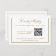 Simple et élégante, cette carte RSVP de mariage a une fine bordure en or sur l'avant et l'arrière et le texte en or correspondant qui peut être modifié comme vous le souhaitez. Il utilise la technologie moderne QR Code pour vous permettre de fournir un lien vers votre site Web mariage pour que vos invités puissent poster leurs réponses.