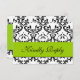 Carte RSVP Invitation Mariage damassé Black Vert. Customisez avec vos informations.