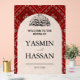 Félicitations à votre mariage ! Faites une première impression mémorable avec notre enseigne acrylique d'entrée Mariage islamique musulmane moderne. Ce magnifique morceau combine une élégante calligraphie arabe mettant en vedette Bismillah Al-Rahman Al-Raheem du Coran, symbolisant les bénédictions et l'unité pendant que vos invités entrent dans votre journée spéciale. Le design du panneau est inspiré des motifs textiles arabes traditionnels, ajoutant une touche sophistiquée et culturellement riche à votre décor mariage. Parfait pour les mariages islamiques et arabes, ce panneau d'entrée unique capture la beauté de la tradition et de l'esthétique moderne. C’est un ajout idéal à tout lieu mariage, offrant un accueil chaleureux et significatif qui donne le ton à une belle célébration. Donnez à votre décor mariage un élément élégant, spirituel et culturellement résonnant avec ce remarquable panneau d'entrée. Le texte peut être customisé au type de partie.