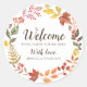 Beau autocollant de bienvenue mariage avec de jolies feuilles de chute d'aquarelle. Ce design floral est parfait pour créer des papeteries mariage d'inspiration automnale ou rustique ! Faites-le vous-même facilement en branchant vos informations. Un modèle élégant et dainty automne pour rendre l'occasion tellement plus spéciale.