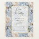 Ce design présente un beau motif floral rustique bleu et blanc pervent doux sur un arrière - plan d'âge bleu perwinkle poussiéreux. Le texte s'affiche sur une zone de texte transparente blanche et souple avec un cadre de parties scintillant en faux or. le dos continue le motif floral. Ce planificateur fait partie de la suite de mariage Blue & White Floral Gold Frame créée par Simply Farmhouse Press.
