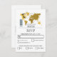 Ce design est décoré sur le thème de la carte d'embarquement. Il présente une carte du monde en or avec deux avions qui forment un coeur alors qu'ils voyagent dans le monde. Ce design mariage thématique de destination est présenté comme une carte d'embarquement avec la date du mariage personnalisé en carré. Le verso présente la carte d'embarquement avec date de mariage personnalisée. Une destination romantique avec une touche élégante. Idéal pour un mariage de destination, peu importe où dans le monde. La conception parfaite de la carte de réponse RSVP tout temps de voyage. Des invitations de mariage et d'autres articles de papeterie sont également disponibles.