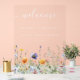 Ce design présente une bordure colorée de fleurs sauvages d'aquarelle dans les tons violet, or, vert et bleu.