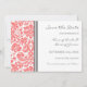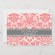 Mariage enregistrer la carte de faire-part date avec élégant et contemporain pêche rose orange, gris fusain foncé et blanc classique et vintage motif floral damask. Personnalisable avec les détails de votre mariage, disponible dans une large gamme de produits mariages correspondants. Contactez-nous pour demander un changement de couleur ou un produit personnalisé.