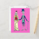 Mercredi de la carte postale morte avec mariée et mariée sur arrière - plan rose