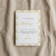 Ajoutez une touche de luxe à votre réception de mariage avec ces cartes de table de remerciement personnalisées, avec un élégant arrière - plan blanc et un motif sophistiqué en feuille de foune d'or. Chaque carte est magnifiquement stylisée avec un script gracieux et une typographie moderne, créant une atmosphère raffinée parfaite pour la famille et les amis. Placez ces cartes à chaque table pour express une gratitude sincère et faire que chaque invité se sent une personnaliser spéciale avec des noms individuels et des messages d'appréciation. L'effet doré imprimé donne un look chic et glamour, idéal pour une célébration élégante en l'honneur de votre nouveau voyage.