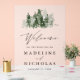 Élégant signe de bienvenue rustique mariage avec des pins vert foncé chasseur et sauge à l'aquarelle avec "Welcome" affiché dans un script de calligraphie moderne et arrière - plan acrylique faux givré. Personnalisez le signe d'accueil mariage acrylique avec vos noms et votre date de mariage. Conçu pour coordonner avec notre collection Rustic Pine Forest mariage.