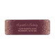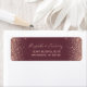 Les bords de cette élégante étiquette d'adresse de retour mariage moderne présentent une conception rose en faux parties scintillant or. Le texte personnalisable combine écriture rose rose pâle et polices de caractères sur un arrière - plan rouge bordeaux foncé.