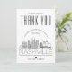 Envoyez un grand merci à votre famille et à vos amis pour votre voyage dans la merveilleuse ville de Nashville, Tennessee. Cette carte unique est adaptée à votre situation mariage et dispose d'une ligne d'horizon moderne de style déco de la ville sur le devant avec les noms du couple marié en dessous. A l'inverse, un espace est prévu pour votre message unique sous une photo des jeunes mariés heureux. Vous pouvez expérimenter avec les fonctions de personnalisation pour changer le filtre photo en couleur, sépia, noir et blanc selon votre préférence personnelle. Vous pouvez également redimensionner votre photo à votre guise. Cette carte est un moyen amusant et léger de remercier vos invités mariages tout en leur souriant le visage. Tous les éléments de cet article sont déverrouillés et réglables, alors n'oubliez pas de vous amuser en étant créatif et en le faisant vous-même !