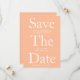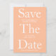 Moderne enregistrer la date avec une calligraphie audacieuse dans une couleur pêche. Personnalisez-le avec les noms de futurs mariés et mariés, la date et l'emplacement. Ajoutez une couleur à l'arrière en cliquant sur le bouton pour modifier la conception.