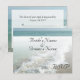 Carte RSVP pour assortir nos invitations de mariage de plage 5x7, fond avec une belle scène océanique avec de l'eau turquoise aqua, des vagues blanches qui se brisent et du sable. Invitez votre famille et vos amis à votre mariage de destination, mariage en croisière ou mariage de plage avec cette jolie invitation. VEUILLEZ NOTER, si vous utilisez "l'invitation de billet", veuillez utiliser la petite carte de réponse de carte de note pour tenir dans la même enveloppe que l'invitation. (Cette carte est insérée uniquement dans l'invitation 5x7). Personnalisez en ligne avec vos informations.