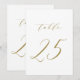Tableau 25. Une carte élégante de numéros de table avec un script minimaliste doré et une typographie classique. Ce numéro de table en or et blanc est parfait pour les mariages, diplômes, baby showers, douches nuptiales et autres événements. D'autres numéros et couleurs sont disponibles.