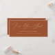 Elégant en-tête de tableau de sièges de mariage avec la phrase "Trouvez votre siège" affichée dans un script moderne de calligraphie blanche avec un arrière - plan en terre cuite. Personnalisez la carte d'en-tête du tableau de sièges en terre cuite avec vos noms, date mariage et emplacement du mariage. Le design s'harmonise avec notre collection de mariages Modern Elegance.