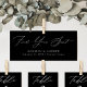 Elégant en-tête de tableau de sièges de mariage avec l'expression "Trouvez votre siège" affichée dans un script moderne de calligraphie blanche avec un arrière - plan noir. Personnalisez la carte d'en-tête du tableau de sièges noir et blanc avec vos noms, votre date de mariage et votre emplacement de mariage. Le design s'harmonise avec notre collection de mariages Modern Elegance.