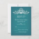 Design élégant de carte RSVP mariage avec un lustre argenté très détaillé sur un arrière - plan bleu. Ce design est offert sur plusieurs produits de papeterie pour faire un beau thème pour tous vos papeteries mariages.