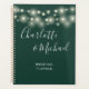 Élégant wedding planner vert émeraude avec de jolies lampes à cordes et des noms de style signature. Conçu par Thisisnotme©