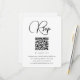 Cette carte de réponse mariage moderne dispose d'un emplacement pour votre code QR afin que les invités puissent facilement s'afficher sur votre site mariage. L'avant présente un design noir et blanc simple et épuré avec typographie de script en lettrage tendance. Le dossier minimal est blanc solide.