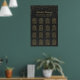 Tableau de sièges mariage pour seize tables avec un arrière - plan de tableau noir imprimé, du texte et des confettis de couleur or et des polices élégantes. Note : les couleurs dorées sont des effets imprimés, pas de véritables feuilles d'or.