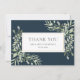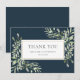 Elégante aquarelle verdure feuille mariage carte de remerciements. Doté de feuilles délicats à ressort d'aquarelle sur un arrière - plan bleu profond qui encadre votre message de remerciement, le nom de famille et la date spéciale ensemble dans un texte élégant. Vous pouvez personnaliser avec votre propre message de remerciement au verso, ou si vous préférez ajouter votre message manuscrit supprimer. Une façon parfaite de dire merci ! Conçu par Thisisnotme©