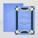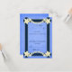 Floral bleu rustique - © Sunny Mars Designs. Personnalisable petite coutume vintage bleu rouillé élégant mariage table pliable cartes de place avec bordure ruban bleu foncé, moderne joli fleurs blanches contre arrière - plan de papier parchemin bleu ancien.