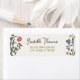 Étiquettes d'adresse de retour de mariage fantaisistes et fantaisistes avec un beau design de gribouillis floral coloré dessiné à la main, accompagné d'une police manuscrite décontractée.