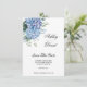 Ce mariage enregistrer l'invitation de la date est montré dans une mise en page moderne avec une belle impression d'aquarelle bleue hydrangée. Affiché dans le choix du papier mat signature. Sélectionnez votre choix de papier. Customisez cet élément en changeant l'exemple de texte à vous avec ce modèle. Image sous licence