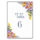 Mariage floral rose et orange Numéro de table