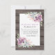 Cartes de réponse de mariage champêtre avec un fond de grange en bois rustique, un arrangement de succulentes dans le coin et un modèle de texte RSVP rustique facile à personnaliser.