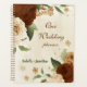 Magnifique planificateur de mariage d'automne ton terre avec fleurs de terre cuite, beige et crème avec des feuilles vertes .
