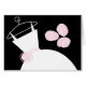 Carte de voeux à thème nuptiale avec un joli design dans les tons rose, noir et blanc avec une robe mariage stylisée sur un cintre accompagné d'un bouquet sur le devant, et rose pâle à l'intérieur. Un design personnalisable pour personnaliser avec votre propre texte, photos et idées.