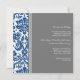 Élégante invitation à renouveler vow mariage dans chic et élégant bleu marine foncé, fusain gris foncé et blanc classique vintage damask motif floral avec texte entièrement personnalisable pour inclure vos détails de la cérémonie de renouvellement vow. Contactez-nous pour une couleur personnalisée.
