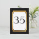 Elégant numéro de table de la réception de mariage personnalisé. Fabriqué dans un beau cadre noir de style Art Déco autour d'un cadre doré plus fin qui borde la zone de texte blanche. Le texte noir est prêt à être personnalisé pour chaque table de votre mariage.