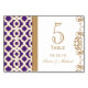 Elégante, élégante et belle carreaux marocains français inspiré carte de numéro de table mariage avec une teinte violette répétée et or géométrique motif design et doré hué français style baroque fleuris. Cette carte haut de gamme et luxueuse est parfaite pour une mariage à thème marocaine, arabe ou aladdin. L'avant et l'arrière de ces cartes de numéros personnalisées peuvent être personnalisés avec les noms de la mariée et du marié et la date du mariage. Oeuvre et design © Chrissy H. Studios, LLC. Tous droits réservés.