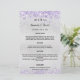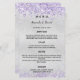 Une carte élégante et séduisante pour les mariages. Personnalisez et ajoutez vos noms, votre date et le menu mariage. Arrière - plan à l'aspect argent faux, décoré de violet, lavande confetti.