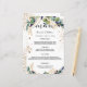 Un menu élégant, moderne et mariage. Un arrière - plan blanc décoré de verdure d'eucalyptus et de feuilles dorés. Taches de fausse parties scintillant dorée. Personnalisez et ajoutez vos noms, votre date et le menu mariage. Lettres de couleur noire. Le mot Menu est écrit avec un script de style à la main tendance avec des swashes. Retour : arrière - plan blanc et faux parties scintillant doré baisse. Les cartes de table et les cartes de place correspondantes sont disponibles dans notre magasin.