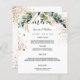 Un menu élégant, moderne et mariage. Un arrière - plan blanc décoré de verdure d'eucalyptus et de feuilles dorés. Taches de fausse parties scintillant dorée. Personnalisez et ajoutez vos noms, votre date et le menu mariage. Lettres de couleur noire. Le mot Menu est écrit avec un script de style à la main tendance avec des swashes. Retour : arrière - plan blanc et faux parties scintillant doré baisse. Les cartes de table et les cartes de place correspondantes sont disponibles dans notre magasin.