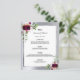 Mariage Menu flores bordeaux argent élégant