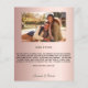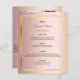 A l'avant : Une élégante carte de menu mariage de style bohème. Personnalisez et ajoutez vos noms, votre date et le menu mariage. Un cadre en faux or et un cadre en faux or rose chic en faux fond métallique. Lettres gris foncé. Retour : arrière - plan de couleur or rose, votre photo et ajouter votre histoire d'amour, faits amusants. Donnez aux gens quelque chose dont il faut parler en attendant que la nourriture soit servie !