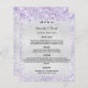 Une carte élégante et séduisante pour les mariages. Personnalisez et ajoutez vos noms, votre date et le menu mariage. Arrière - plan à l'aspect argent faux, décoré de violet, lavande confetti.
