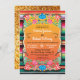 Annonce colorée du Mariage mexicain Fiesta. Il présente des fleurs d'inspiration papel picado, des accents de parties scintillant d'or FAUX, des maracas et un arrière - plan de tapis mexicain aztèque. Nombre d'éléments mariages correspondants pour cet élément