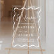 Bienvenue invités à votre mariage dans le style avec ce panneau de mariage acrylique moderne blanc Wavy Frame ! Le design présente vos noms et détails mariages en lettres blanches contrastant avec un arrière - plan clair. Une bordure blanche ondulée entoure vos détails mariages donnant à cet accueil mariage un signe rétro, mais moderne.