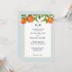 Elégante invitation à l'aquarelle d'agrumes orange, idéal pour les mariages d'été. L'invitation présente des illustrations aquarelles de fruits à l'orange et de feuilles avec une bordure d'eau pâle.